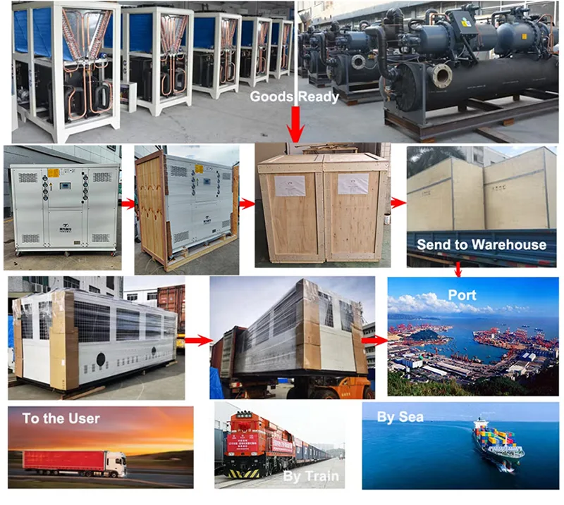 3.中国の他のサプライヤーに独自の出荷コンテナがある場合、中国のどの都市でもチラーマシンをサプライヤーに配送するお手伝いをします。